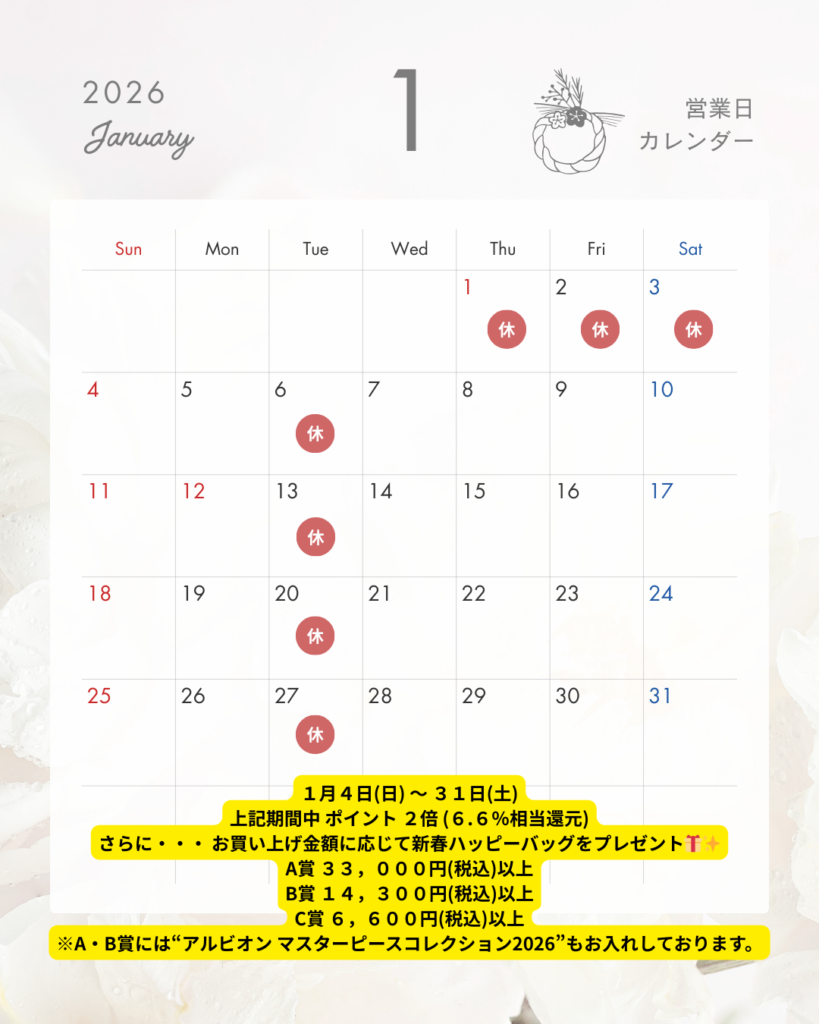 【 1月の店休日 】